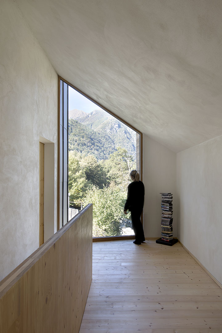 Il progetto presenta la forma del classico archetipo architettonico. Grande importanza è stata data alle aperture vetrate, per garantire la duplice funzione di collegamento con l’esterno e ottimizzazione dell’apporto solare passivo. I materiali utilizzati per la costruzione dell’edificio sono prevalentemente naturali: dalla struttura in legno, all’isolamento in paglia di riso con RH-P per i muri perimetrali e per i solai di copertura e di controterra. Le pareti interne sono state realizzate con lastre e intonaco in argilla e lolla di riso RH400. Sulle pareti esterne è stato applicato l’intonaco RH100, a base di calce e lolla, per garantire un isolamento termico.