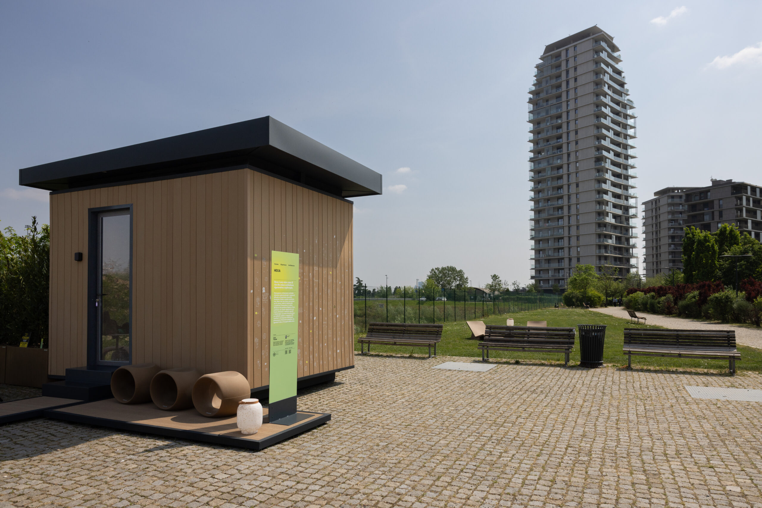 Hexa è una micro Casa di riso che unisce architettura rigenerativa e apiterapia, costituendo un ecosistema vivo e parte attiva di un processo di prevenzione e cura della nostra salute e del nostro pianeta.